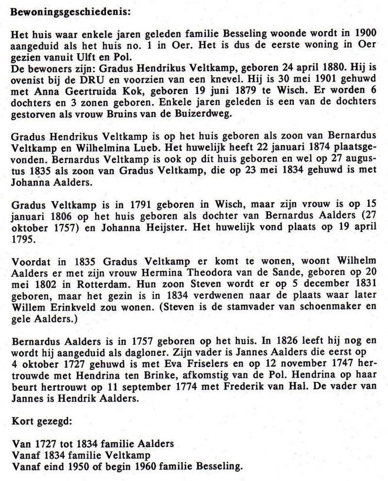 1899 Oer Huis No 112A Op 16 maart 1899 werd op het adres Oer Huis No 112A geboren Wilhelmina Berendina Aalders als dochter van het echtpaar Wilhelmus Bernardus Aalders en Johanna Maria Gregoor, dit was geen officieel bestaand huisnummer waarschijnlijk heeft de familie hier tijdelijk gewoond.