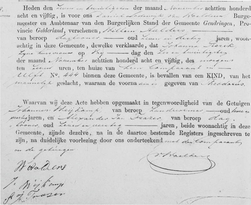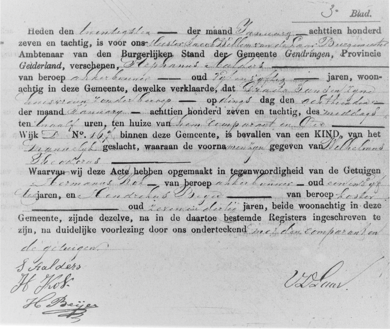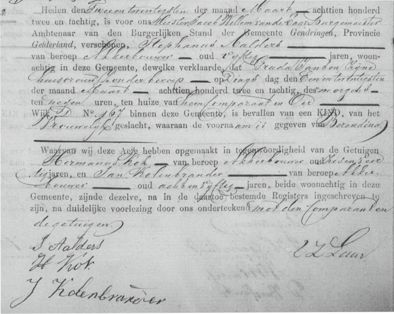 ^ Geboorte document: Berendina Aalders op 21-03-1882. Des s'morgens om 9 uur te Oer. Wijk no. 167.