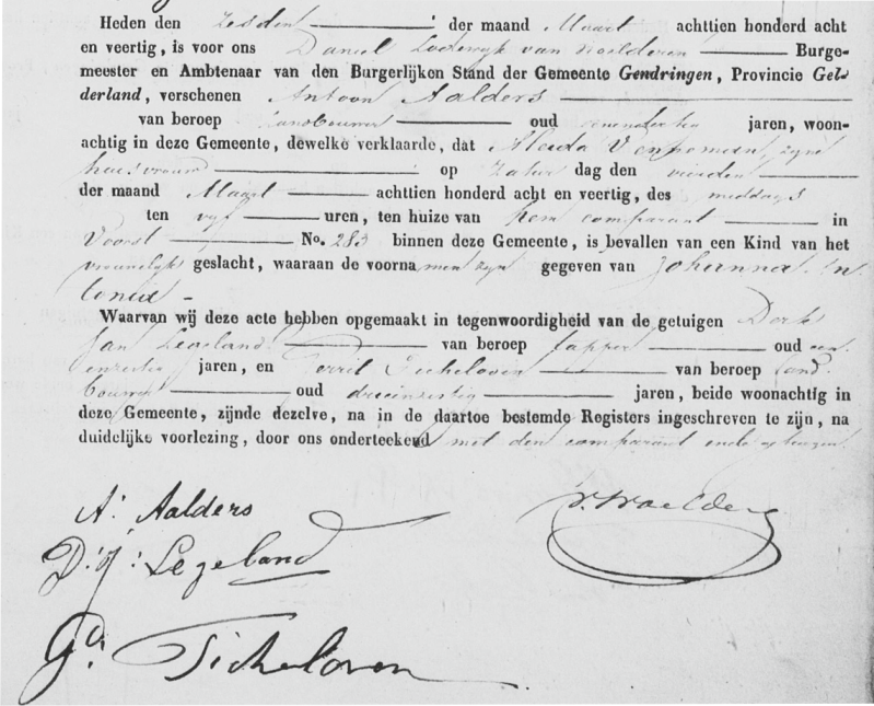 Geboorte van Henrica Aalders op 10-03-1759 te Gendringen. Ouders zijn Wilhelmus Aalders en Eva van Vorden.
