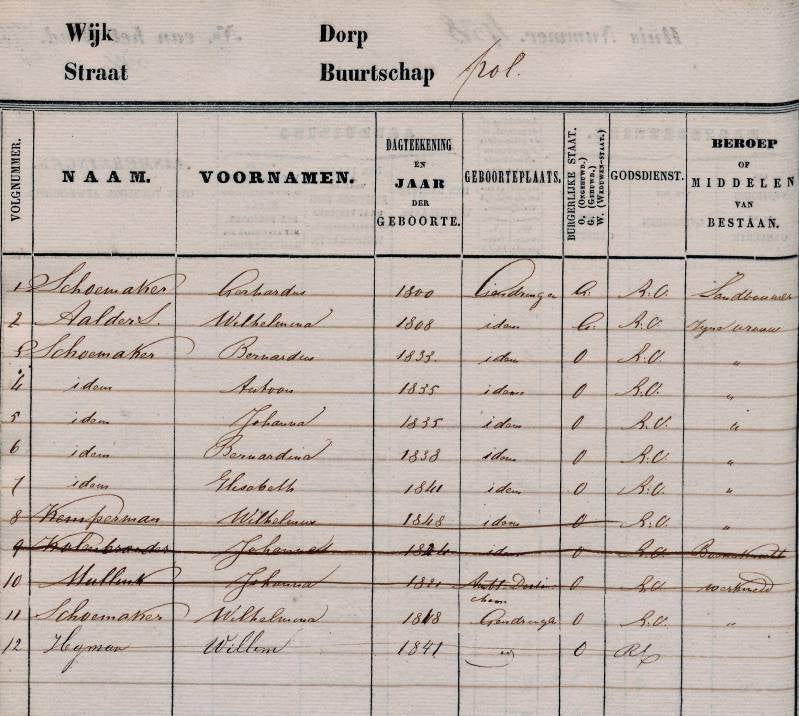 Gezinskaart van Gerardus Schoemaker en Wilhelmina Aalders.