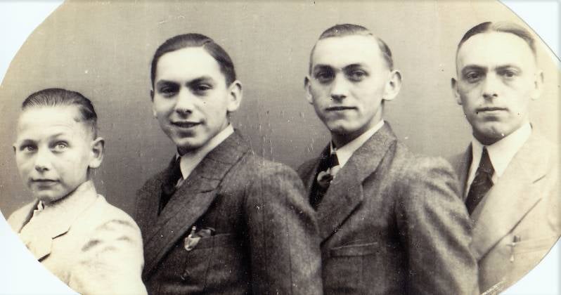 De 4 zonen Aalders van Wilhelmus en Johanna. v.l.n.r. Bennie, Piet (de kapper), Jan en Henk Aalders de textielwinkelier.
